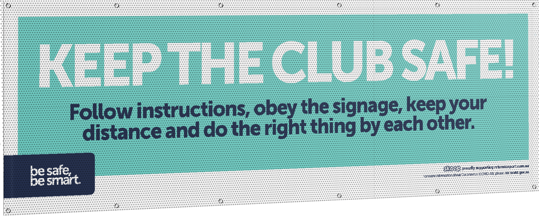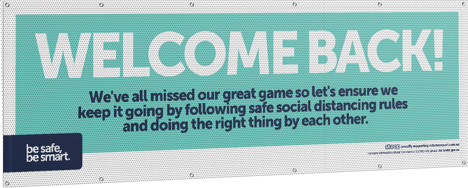 WANT A DIFFERENT DESIGN? If you require different messaging or want to add your club logo, get in touch via 03 8370 1200 or via team@returntosport.com.au for a quote. Pricing may vary.