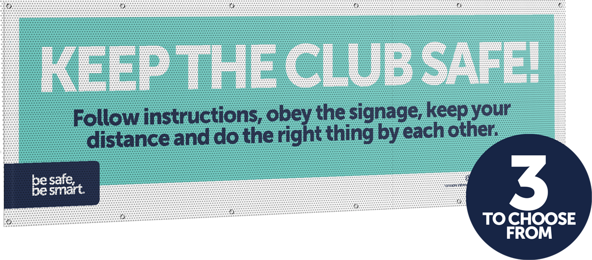 Jumbo-sized mesh banners at a whopping 3m wide x 1m tall or strong messaging around the club.