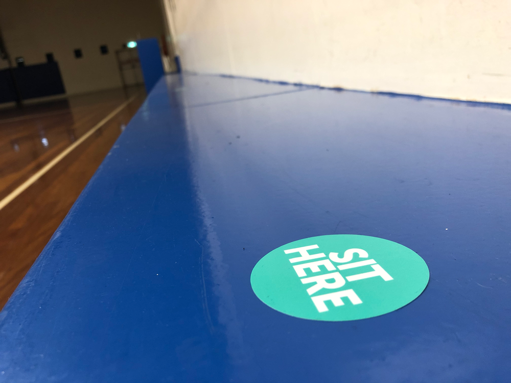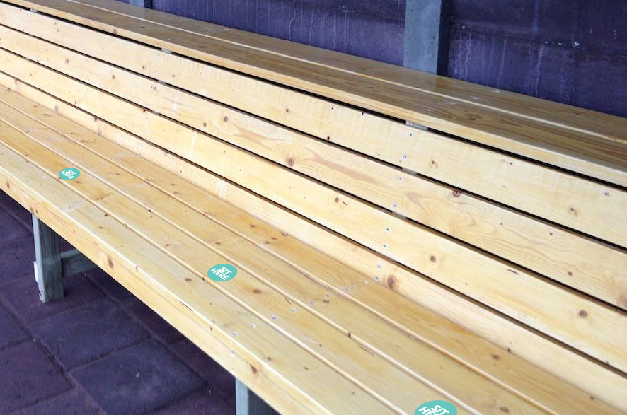 An economical way to clearly mark seating positions to ensure appropriate social distancing. Can be used for player benches, score benches and spectators.