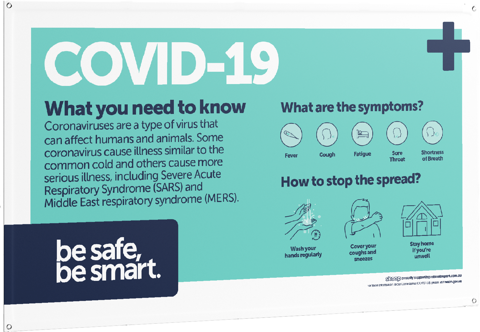 WANT A DIFFERENT DESIGN? If you require different messaging or want to add your club logo, get in touch via 03 8370 1200 or via team@returntosport.com.au for a quote. Pricing may vary based on your needs.